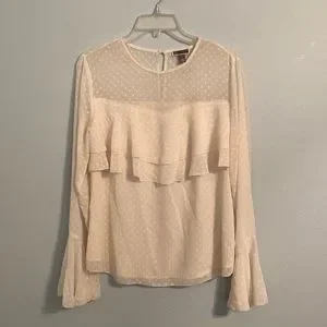 Chelsea 28 cream swiss dot sheer ruffle blouse size M