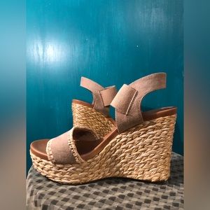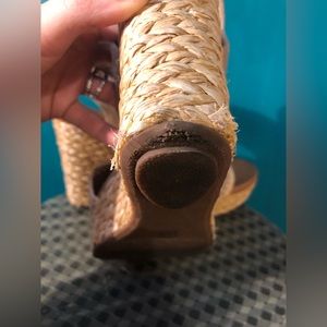 Tan Mia Straw Wedge Heel Sandals Size 8.5