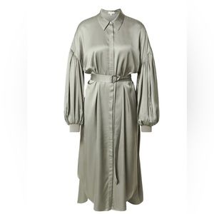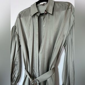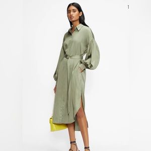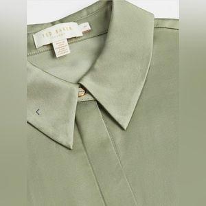 Gorgeous satin shirt dress from Ted Baker London. Originally $395 and only worn once (got tons of compliments!) Sage green color. It’s labeled size 1 (see size chart in pictures) but it’s quite oversized so I would say it can work for anyone from size 4-8 (small/medium). Open to reasonable offers ☺️