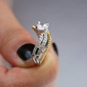New Women’s Teo Tone 925 Silver Twisted Diamond Ring