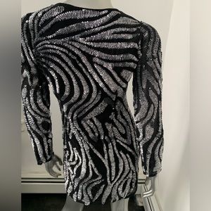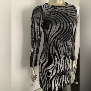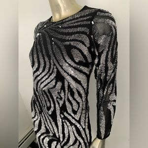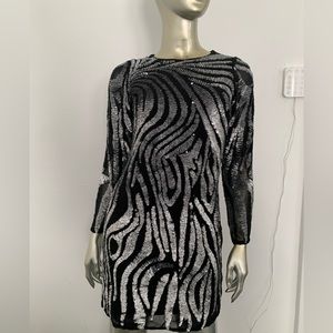 Black silver metallic Beaded sequin Dress long sleeve mini size 6 zebra print