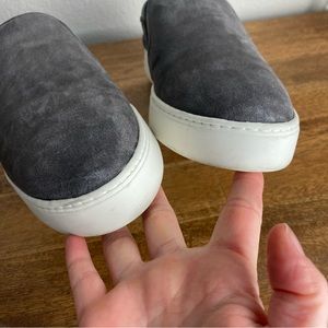 Vince Garvey Slip On sneakers in a grey suede with a pointed toe. Size 9.5. Very cute elevated casual shoe. These are in excellent condition. Some light dirt markings.