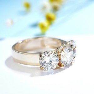 Certified 6ct. t.w. Moissanite Diamond 3 Stone Wedding Engagement Ring NEW
