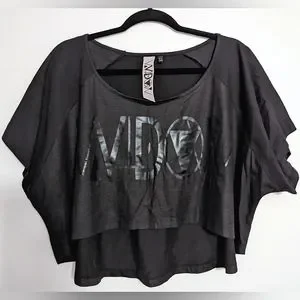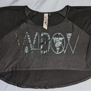 Rare and old Widow brand raglan, black on black, high low crop top.