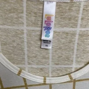 I still like this, but I am thinning out my longer shirt collection. I just don’t wear them as much as other tops. Like any LLR piece, there’s a lot of stretch. 17 inches armpit to armpit. 9 1/2 inch sleeve length. Total length at the longest point is 31 inches. It goes 2 inches shorter in the front. Side slits to help fit a curvy backside. Very comfortable and flattering. It is a window pane design in a heathered tan/camel and an off-white. In EUC. Bundle with another item to make use of my closet discount!