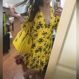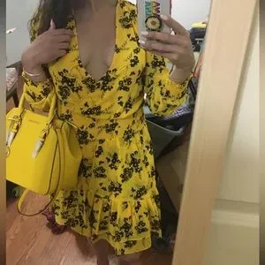 Yellow Floral Michael Kors Midi Dress | V-Neck with light ruffle at bottom of the dress. Tag indicates size XS but fit is way more true to a small/ medium.