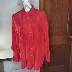 Womans James River Traders Red Silk Long sleeve Blouse size Medium