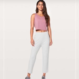 Practically new Lululemon "every moment pant 26" Im 5'2" and they come to about my ankle. Super soft and stretchy pants, no signs of piling, holes or stains! In color: Vapor Size:6 could definitely fit an 8!