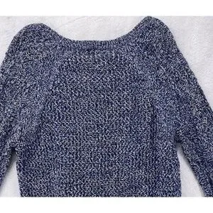 Sandro Women's Blue Size 3 Sweater Cotton Top Long Sleeve Pullover Crew Neck