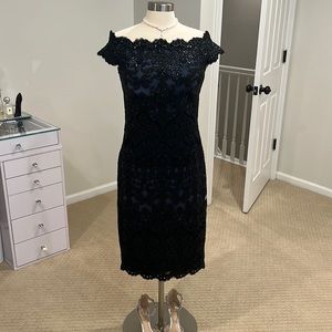 Off-Shoulder sequin lace cocktail dress runs small this dress is size 12 but fits size 10
