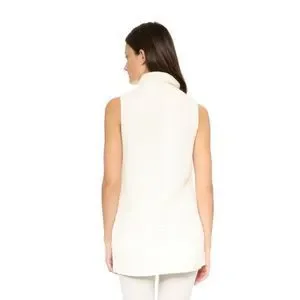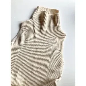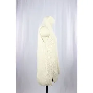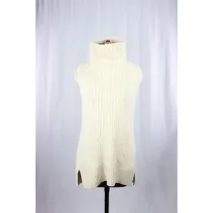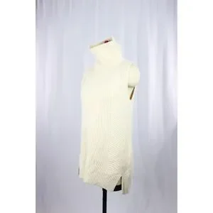 VINCE Ivory Cream Wool Cashmere Rib Knit Sleeveless Turtleneck Sweater, Size S