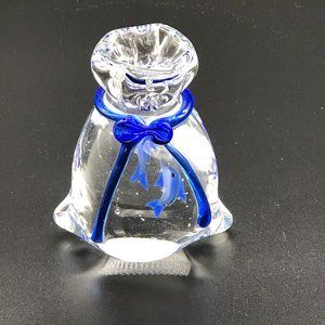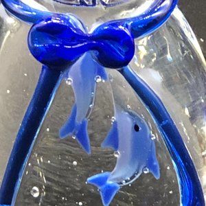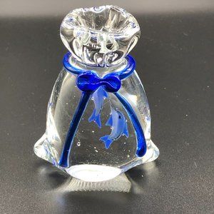 MURANO Art Glass Paperweight RARE: 2 BLUE Fish in a Bag Hand-blown Glass Ribbon