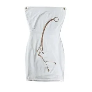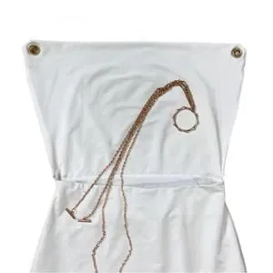 Lined but unpadded. Solid white. Chain needs to be pulled through loops and attached. Size medium.
