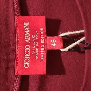 Brand New with Tags Giorgio Armani Milano Limited Edition Men's T-Shirt is Size 46 (Small). This shirt is maroon in color with dark navy blue print and signature. Made from a soft fabric, shirt material s 90% Viscose/10% Elastane. Shirt was made in Italy and comes with the Certificate of Authenticity as shown. Please see all photos for reference.