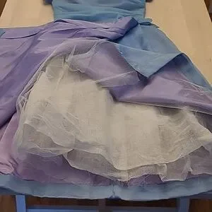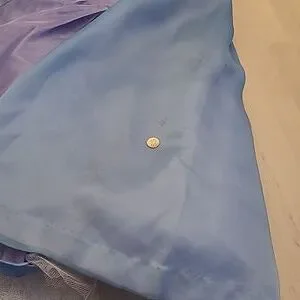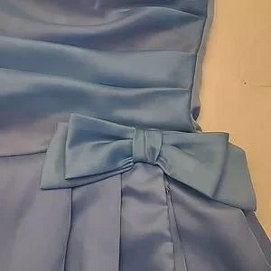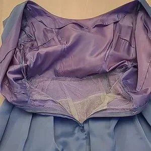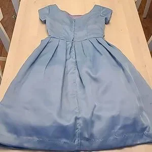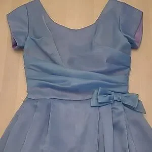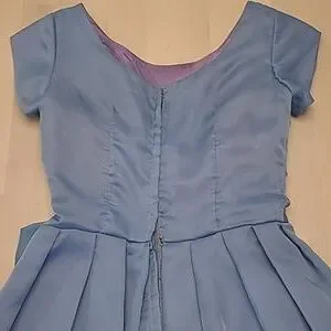 This is a fabulous vintage 1950s handcrafted layered crinoline and lined cocktail party dress! No size or material tags, but the outer layer feels like an acetate. Blue dress with a satin feel purple lining that creates an iridescent light periwinkle blue. Short sleeved, Ruched top, with a bow at the waist. Tabit zipper.***Dress is in excellent VINTAGE used condition with usual signs of wear. I did not spot treat the dress, but the dress was steam cleaned. There are a few marks, and one hook is missing at the back zipper. Please refer to photos for condioton because they are a part of the description as well.*** I believe this is somewhere between a womens small and a medium, but please refer to the above measurements for sizing. Non-smoking household.