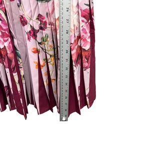 Ted Baker Serenity Contrast Pleated Floral Print Dress Maroon Womens