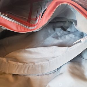 This is a great bag! it has so many pockets. padded back, hook handle and adjustable body strap.