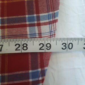 Red Plaid with blue, white, and yellow