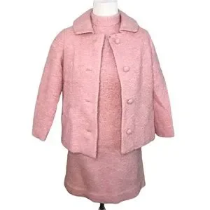 Vintage 60s Pink Boucle Dress and Jacket Set