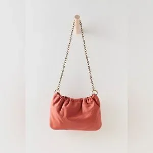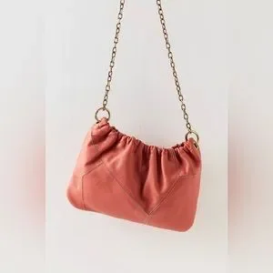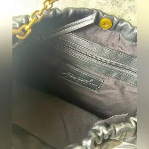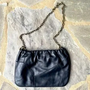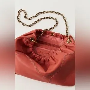 Features: Crossbody style, leather fabrication, seamed details, cinched detailing, snap button closure, interior zipper pocket, chain strap