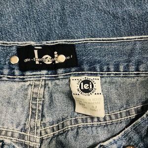 LEI Junior's 13 Blue Jeans Suspender Button Wide Leg Light Wash Denim Flaw A