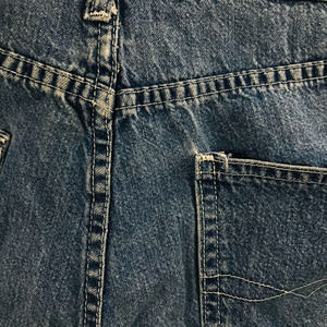 Flaw: Light stain on the back near the hem, and one back pocket is slightly coming loose