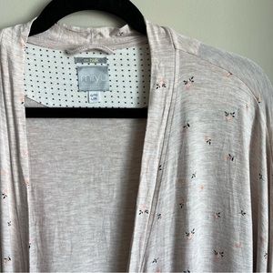 A light and comfortable robe trimmed with a thin band of lace on the sleeve.