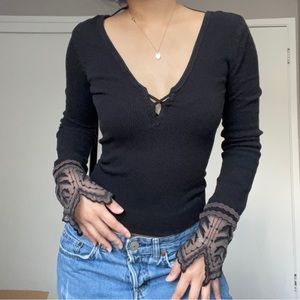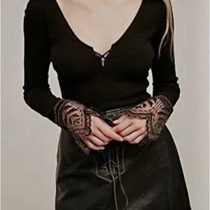 SOLD Free People Last Dance Embroidered Lace Cuff Black Long Sleeve