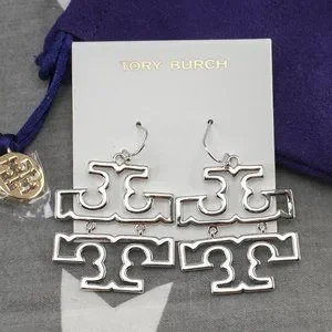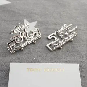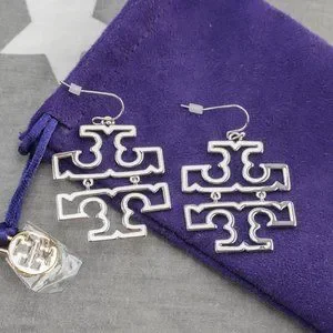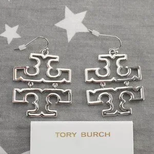 NEW Tory Burch Britten Hinged Dangle Statement Earrings in Silver Polished
