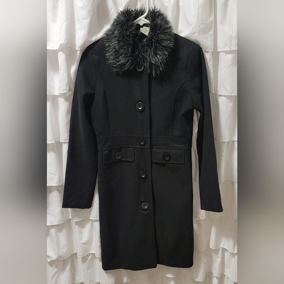 Voice Long Wool Coat Faux Fur Collar Button Up Fully Lined