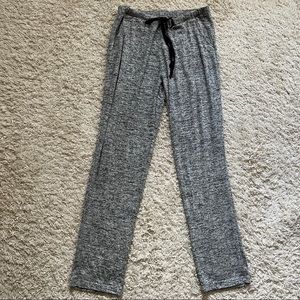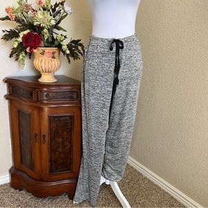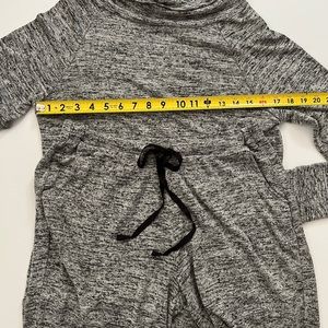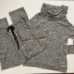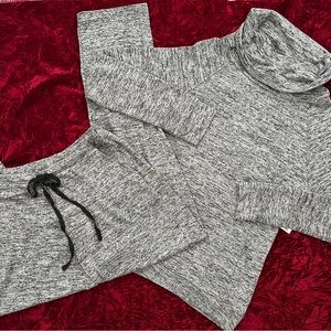 Super Soft and Comfy Loungewear Set, Marled Black and Gray Knit Fabric, Cowl Neck Top with Kangaroo Pocket, Banded Cuffs and Hem, Straight Leg Elasticized Drawstring Pants with Front Pockets