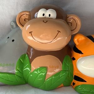 Stephen Joseph Ceramic Bank Jungle Theme Rhino Monkey Tiger Spend Save Share