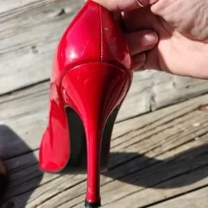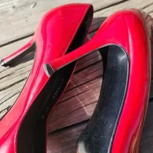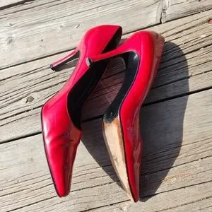 worn in good condition normal wear with some marks and scuffs..beautiful red heels..no box