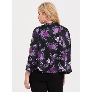 Torrid Purple Floral Satin Kimono Open Front Black Plus Size 3/4 3X 4X H14447