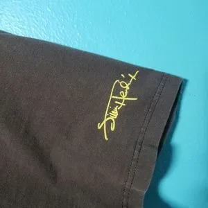 Brown tee with hendrix graphics on front and signature graphic on sleeve width 22 length 29