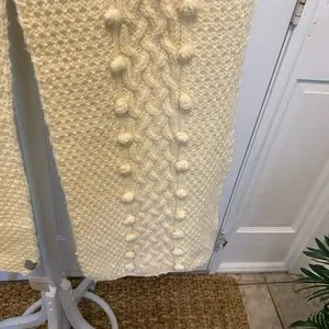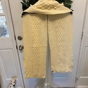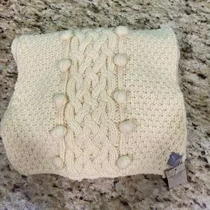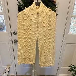 NWT American Eagle Pom Pom Baubles Cable Knit Wool Blend Knit Scarf Cream OS