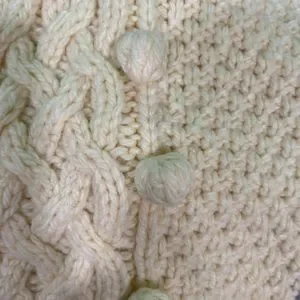 NWT American Eagle cable knit with pom pom baubles wool blend knit scarf, A&E logo at hemline. 38% Acrylic 31% Wool 27% Nylon 4% Other