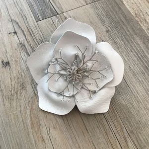Ted Rossi White Leather Flower Beaded Cuff Bracelet.