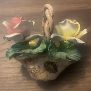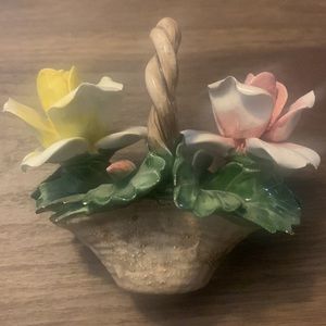 Vintage Nuova Capodimonte Porcelain Mini Basket Pink Yellow Flowers