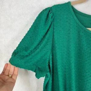 Beautiful emerald green W5 by Anthropologie top with front tie and puffed sleeves. Popcorn texture. Love it, but never wore it.