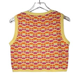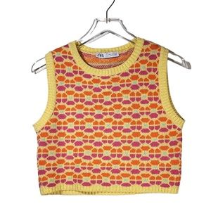SOLD:Zara Womens Floral Geometric Knit Sweater Vest in Yellow/Orange Multicolor