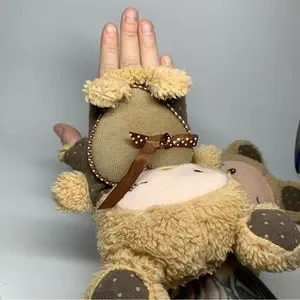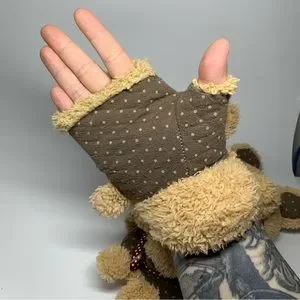 Hello Kitty SMALL mittens BROWN BEAR FUZZY KAWAII