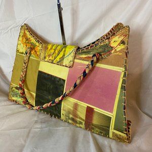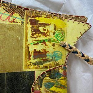 Unique hand crafted bag, woven straw /textile material, 20 inches wide 13 inches ht, with woven straps
