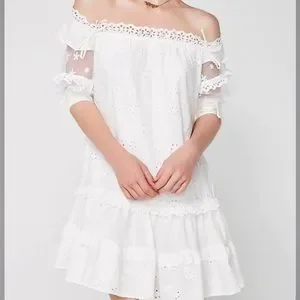 For Love & Lemons Hermosa Eyelet Cute Sweet Mesh Sleeve off Shoulder Dress