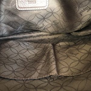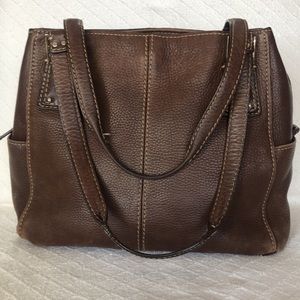 Roomy vintage Fossil shoulder bag. Brown distressed leather. H 101/2 W 13 D 5 1/4. Excellent condition inside and outside.