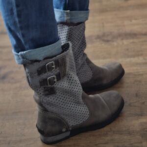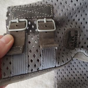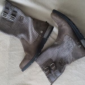 Sorel boots in excellent condition. Women's size 8. Brown leather with gray suede, mesh top. Easy to pull on.