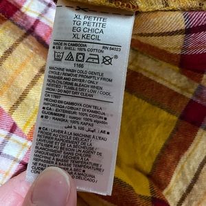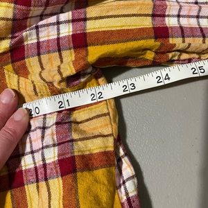 Good condition. Gold, White and Maroon. Has all buttons. Super Cute. Length 26". Across Chest: 22". Size: XL. Measurements approximate. Bundle to save. Offers welcomed!
