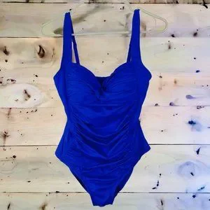 Liz Claiborne Cobalt Blue One Piece Swimsuit with Ruched Waist