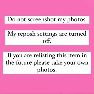 Do not screenshot my photos without permission. My reposh settings are turned off. If re-listing this item in the future please take your own photos.