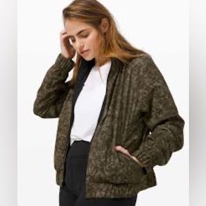 Lululemon Bombs Away Black/Olive Green pattern reversible Bomber Size 4